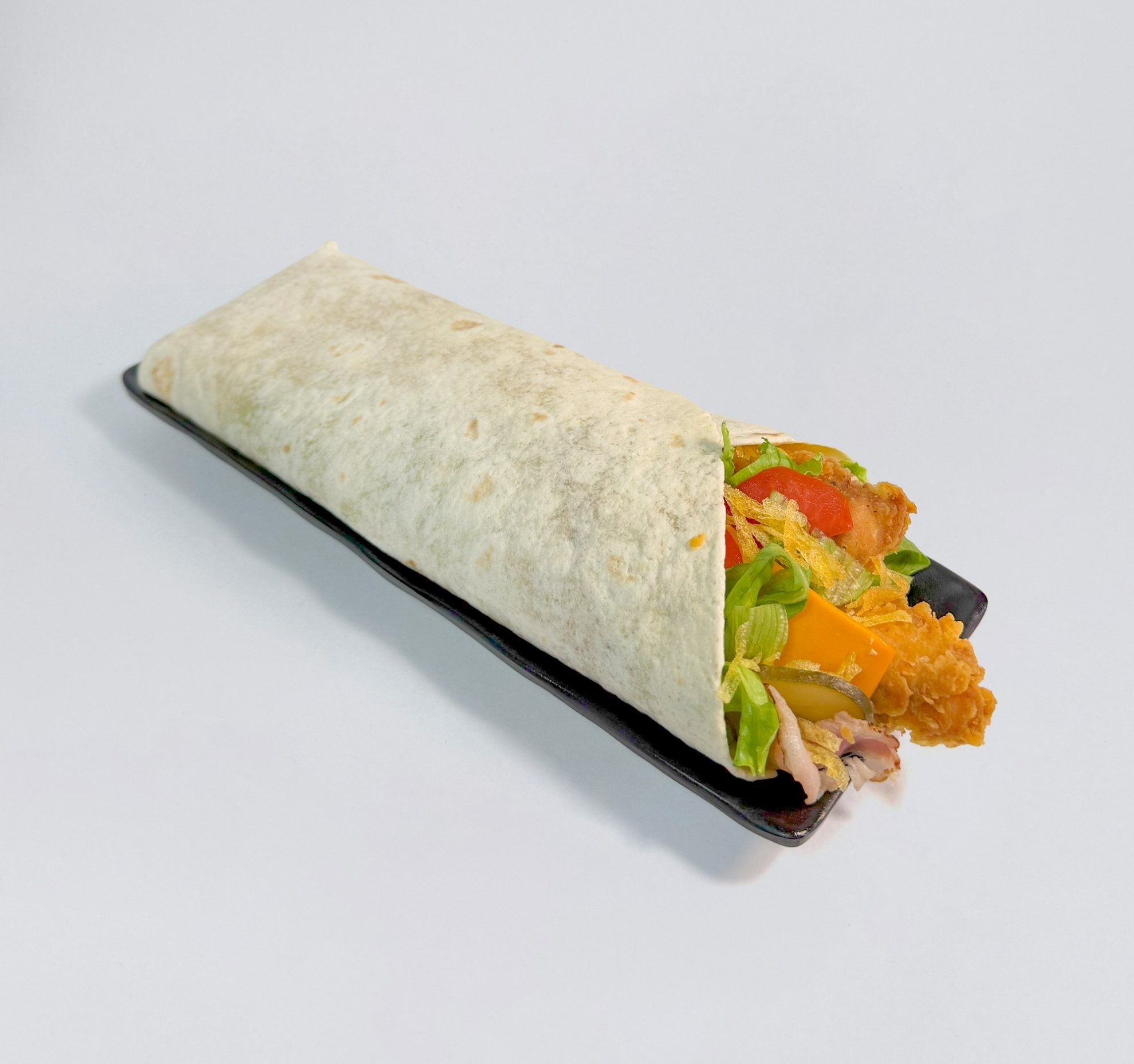 Chicken breast, bacon, tomato, pickles, iceberg lettuce, potato chips, cheddar cheese, cheese sauce, 350g