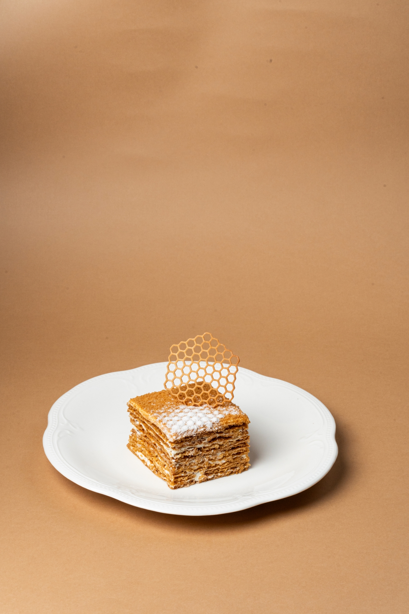Delicate honey biscuits, covered with a light vanilla custard