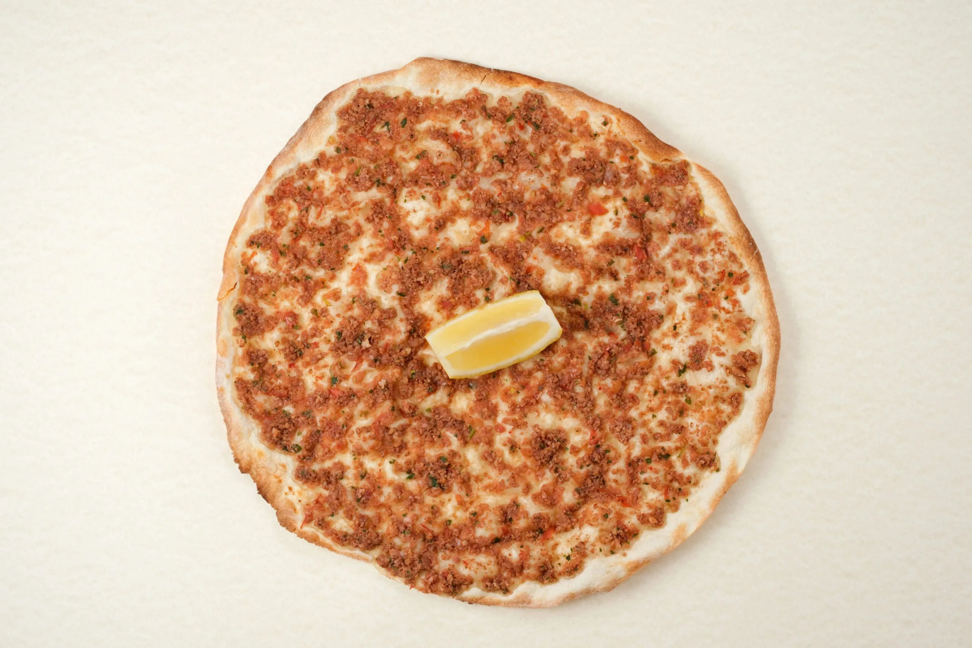 Flatbread, Ground beef, Tomato, Onion, Garlic, Hot pepper, Parsley