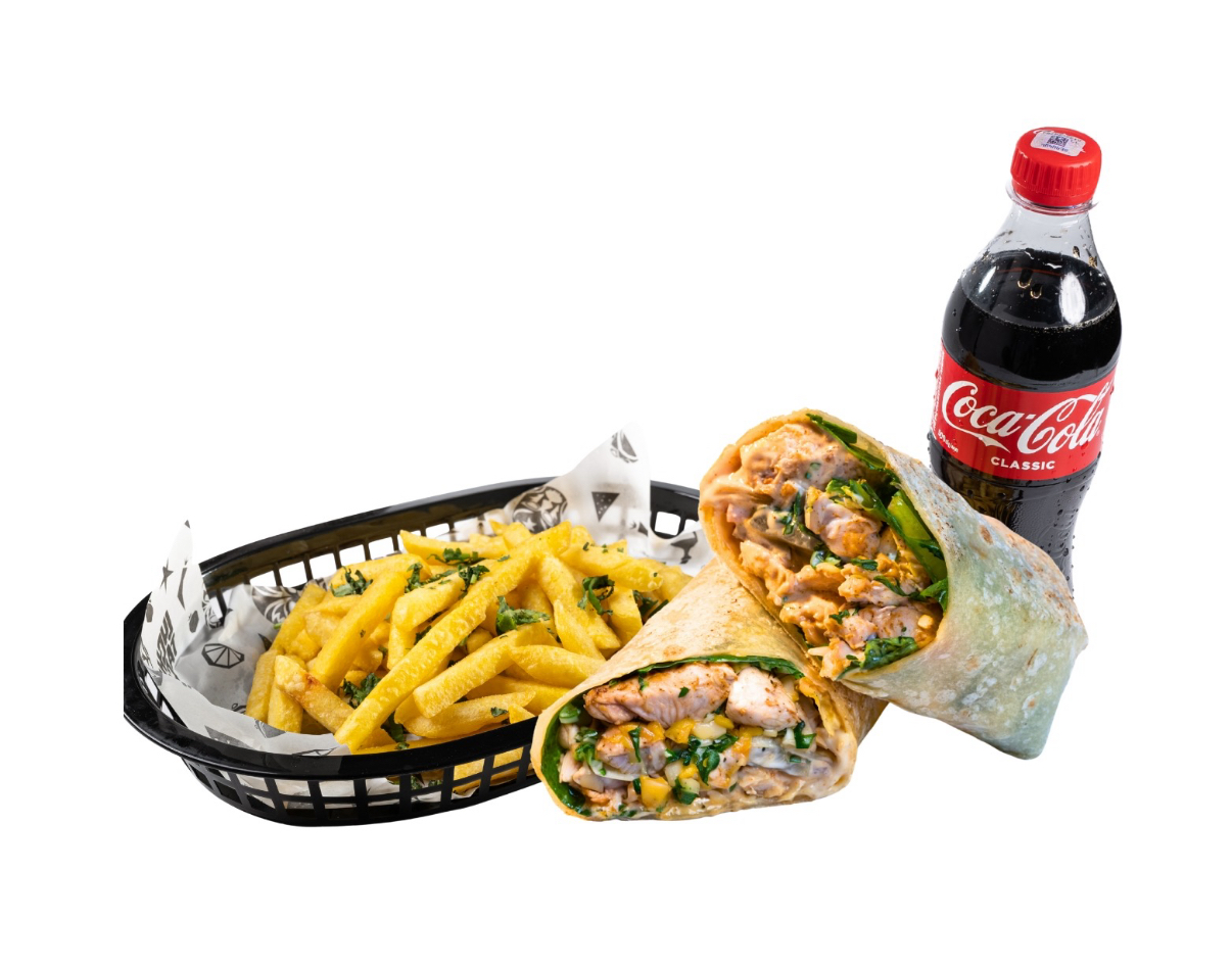 Mexican shawarma, french fries, Coca-Cola 0.5