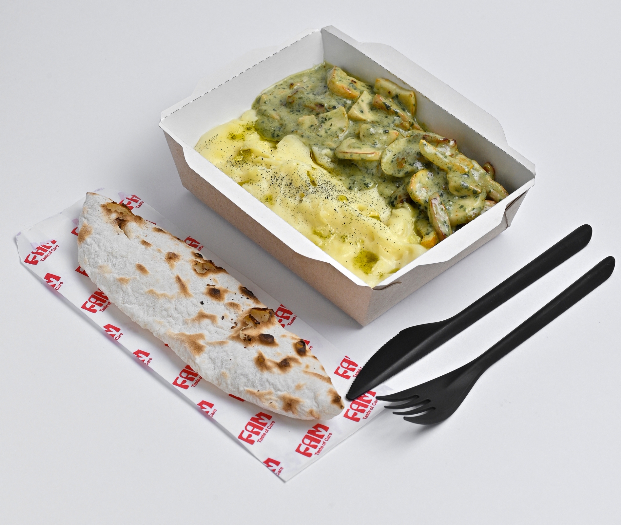 Pork, mushrooms, cream, pesto sauce, mashed potatoes, butter, 430g