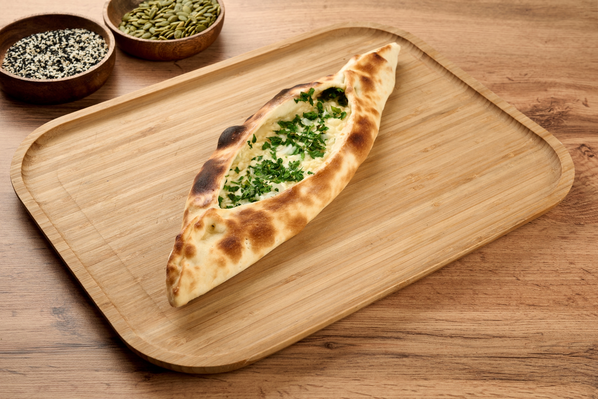 Dough, Cheese mixture, parsley, onion