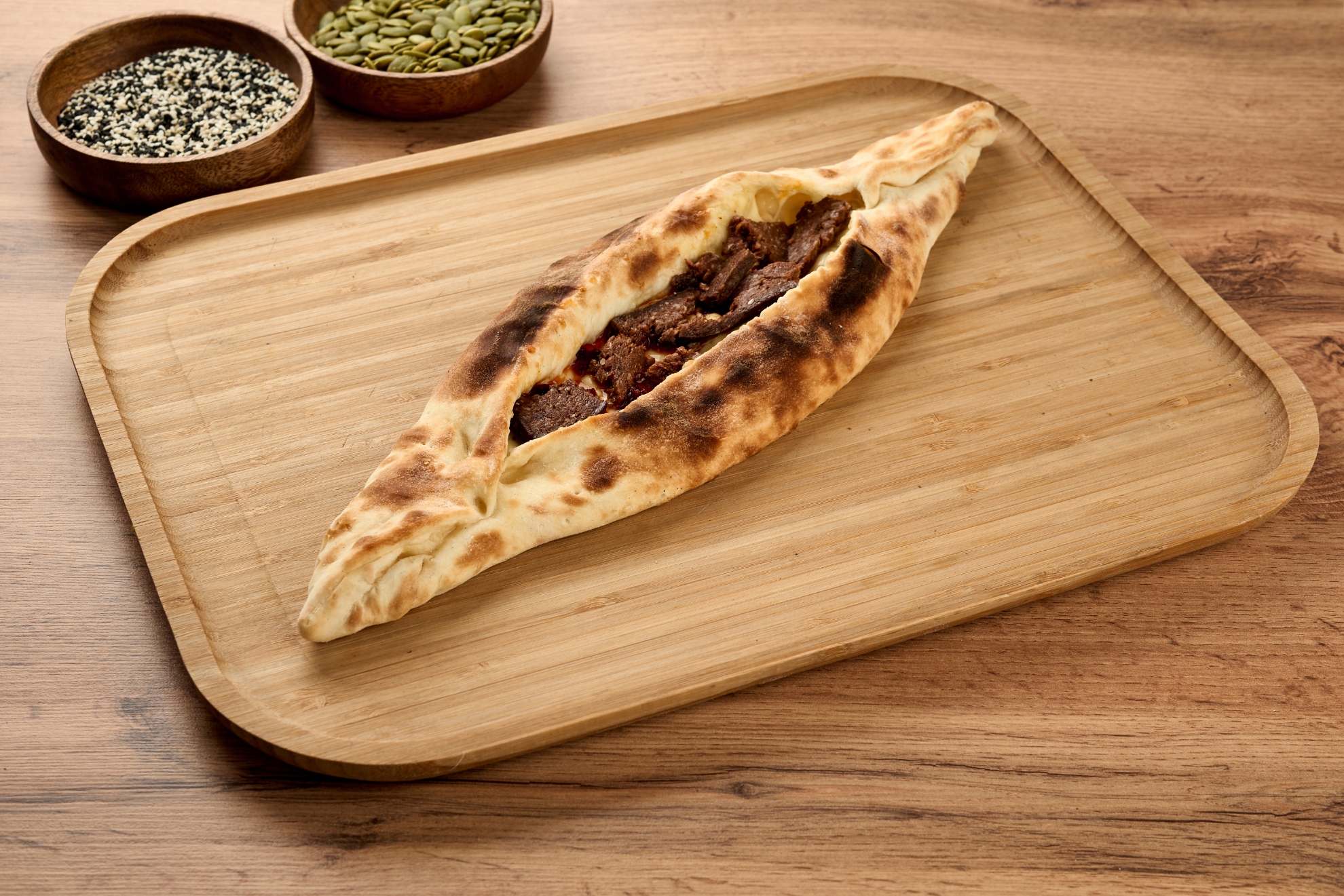 Dough, cheese mixture, sausage, pepper paste