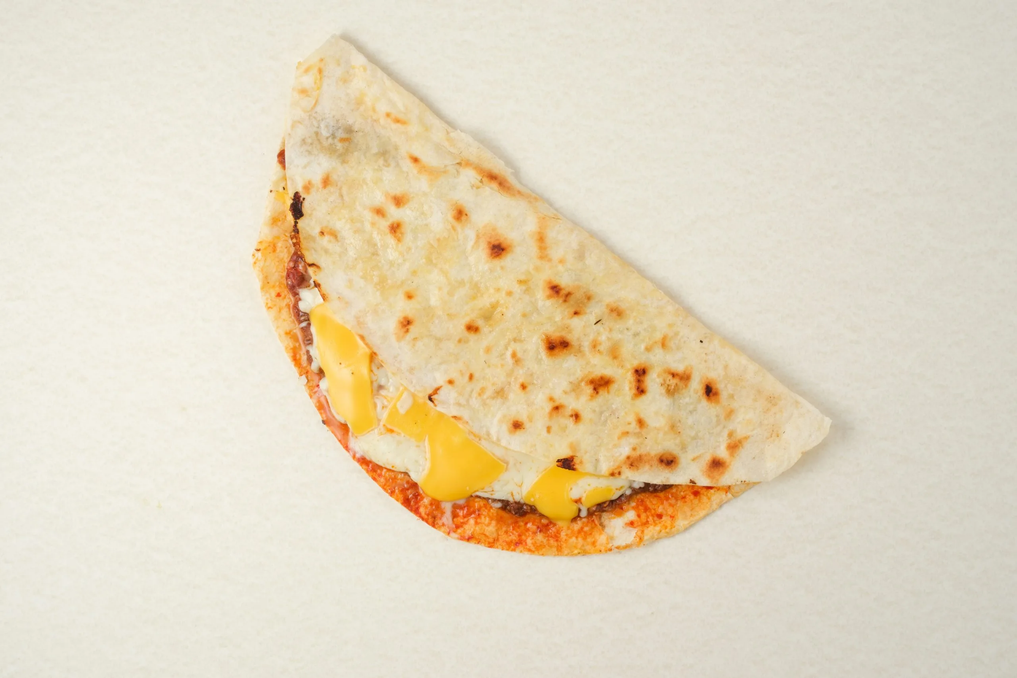 Flatbread, ground beef, mozzarella cheese, cheddar cheese, pepper paste