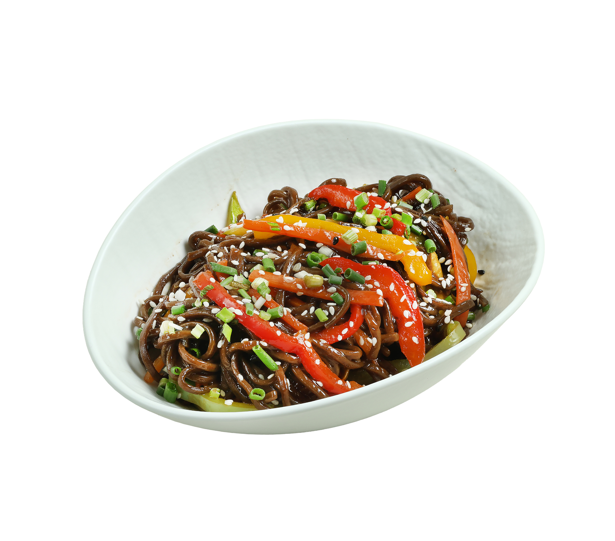 Buckwheat noodles, bell pepper, zucchini, carrot, Teriyaki sauce, green onion, sesame